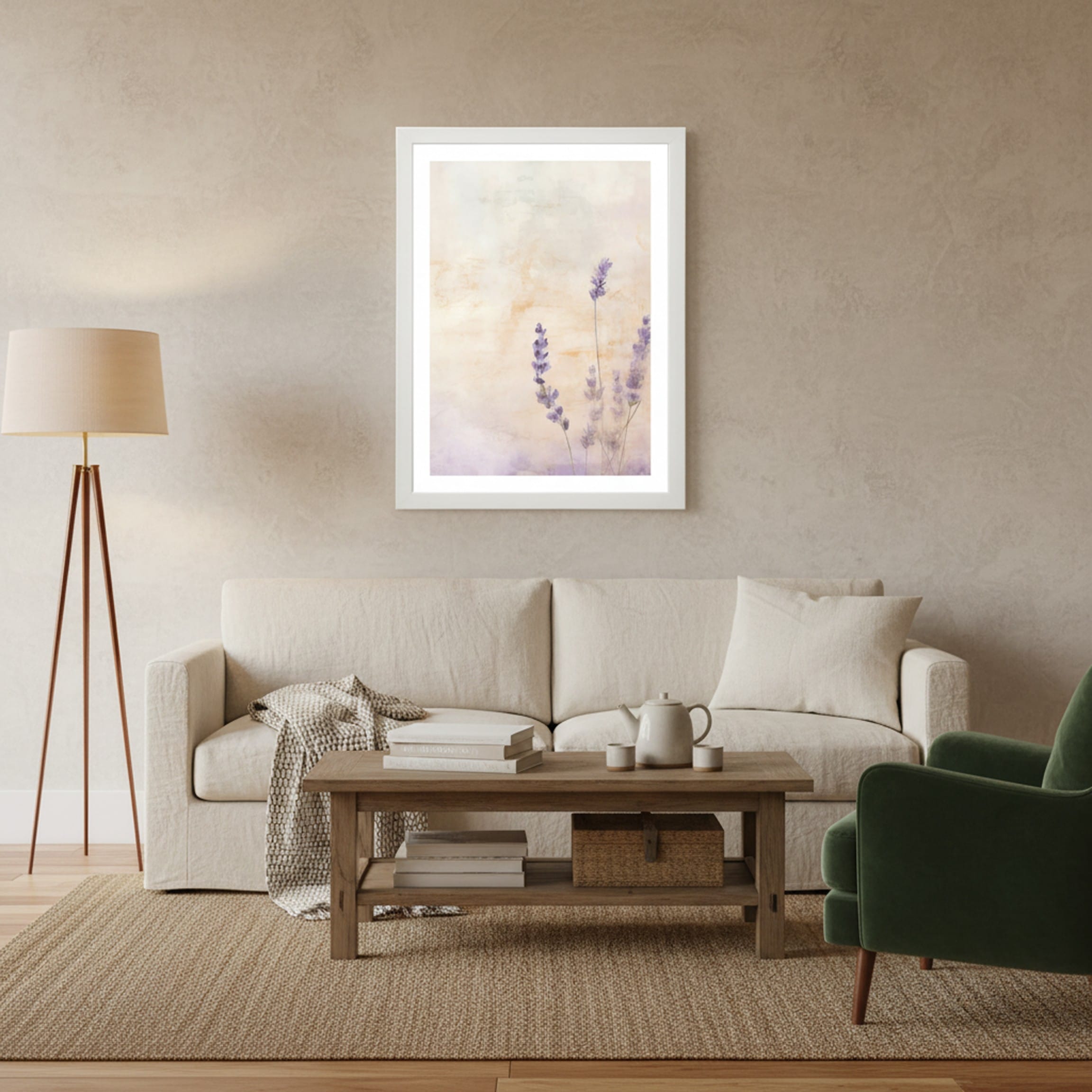 Wprowadź do swojego domu atmosferę wiejskiego spokoju w artystycznym wydaniu. „Zapach Lawendy” to propozycja dla miłośników subtelnych dekoracji, które nie dominują wnętrza, lecz nadają mu duszę. Malarskie ujęcie lawendy, z jej charakterystycznymi, pionowymi kłosami, zostało osadzone w abstrakcyjnym, teksturalnym tle, które przypomina stary pergamin lub ścianę skąpaną w miękkim świetle zmierzchu. To plakat, który sprzyja wyciszeniu i relaksowi.