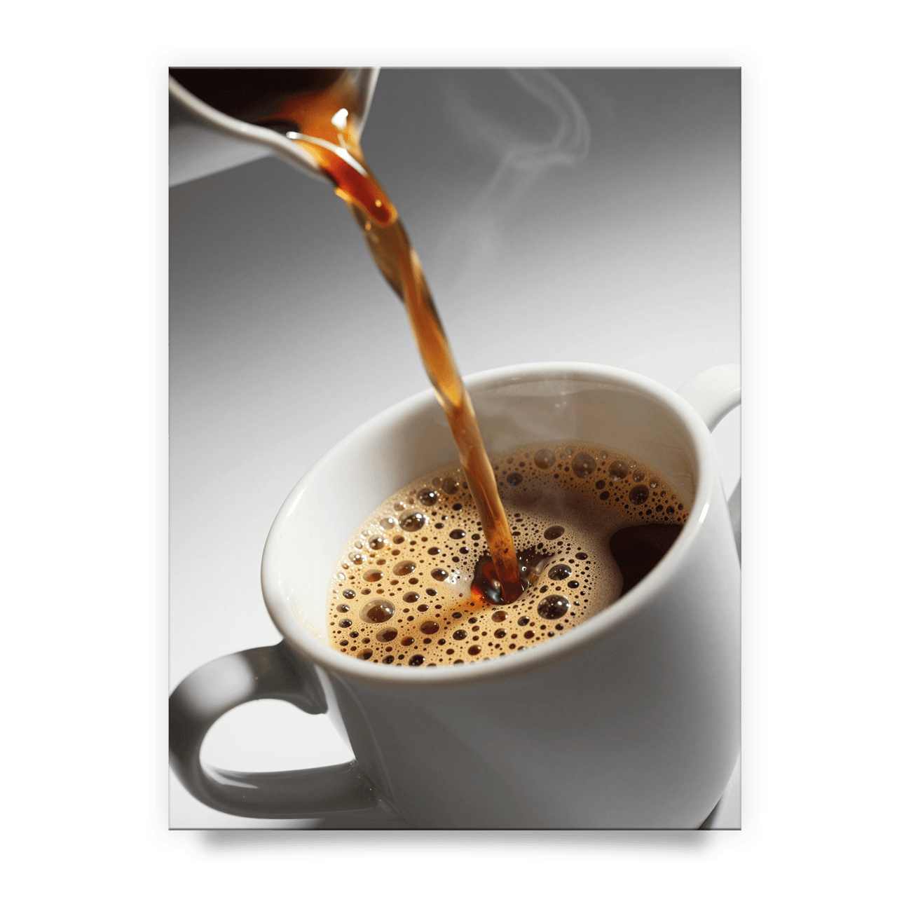 Poczuj energię każdego poranka. Plakat „Poranna Energia” to mistrzowskie ujęcie świeżo parzonej kawy wlewanej do klasycznej białej filiżanki. Dynamika strumienia napoju, detale kawowej pianki (cremy) oraz delikatna smuga pary tworzą obraz, który ożywi każdą kuchnię i jadalnię. To dekoracja idealna dla tych, dla których kawa to najważniejszy punkt dnia. Wydruk klasy premium na papierze Luster 260g.
