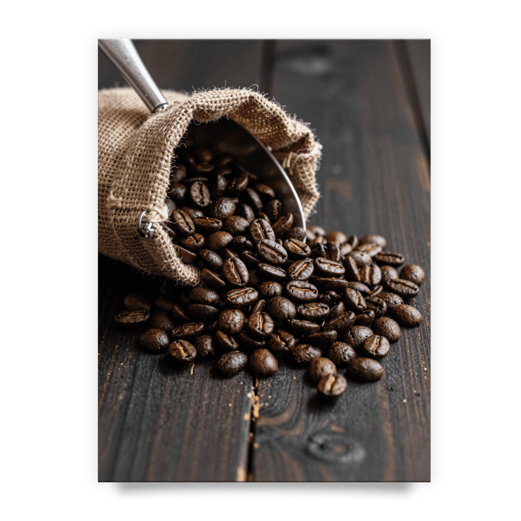 Nasycenie i ostrość: 12-pigmentowy druk gwarantuje, że każde ziarno kawy jest ostre i lśniące, co nadaje plakatowi trójwymiarowy efekt.