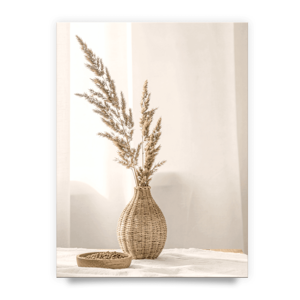 Plakat „Złote kłosy” – pleciony wazon, styl rustykalny i boho modern