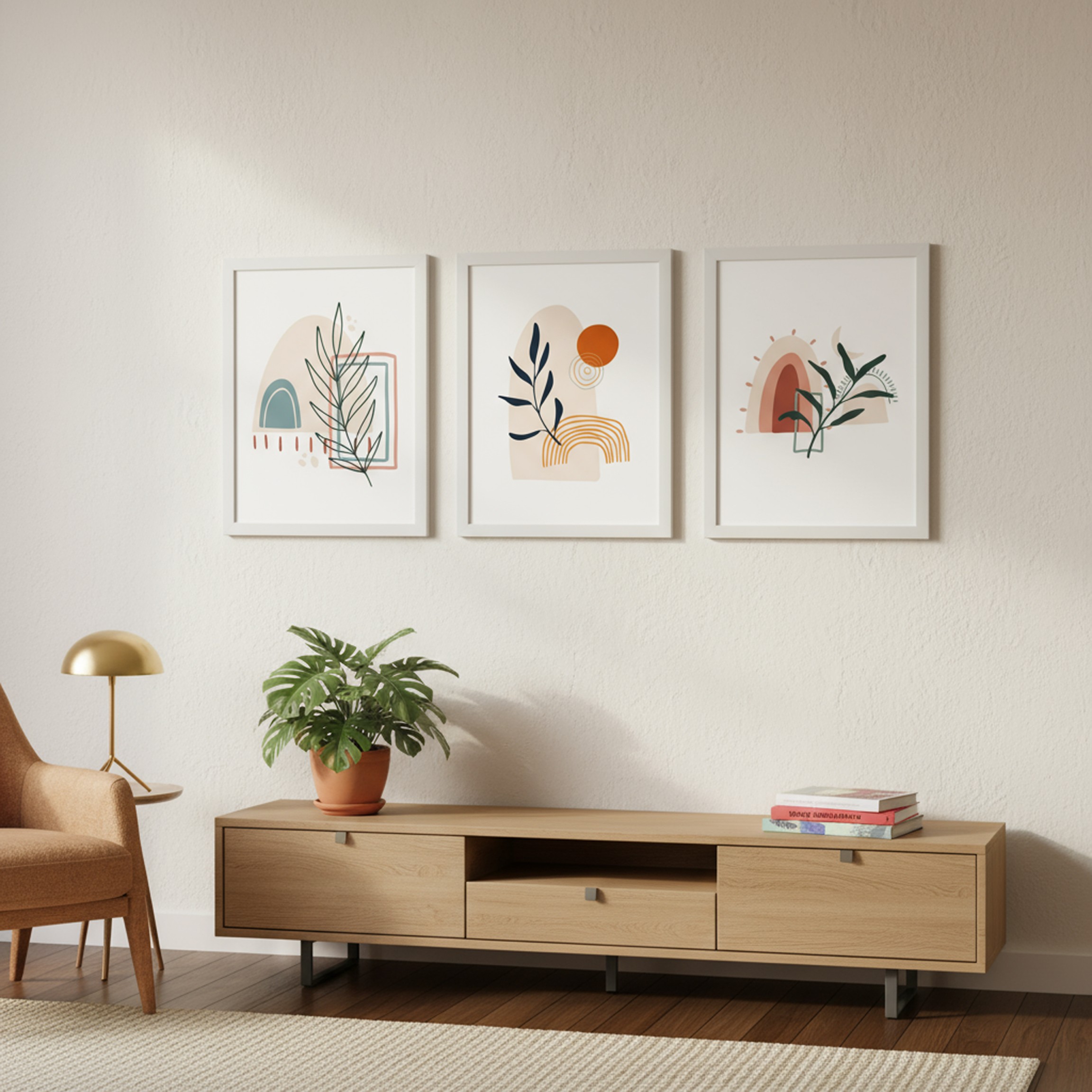 Nadaj swojemu wnętrzu wyjątkowy charakter dzięki zestawowi 3 plakatów w stylu BOHO. To nie tylko dekoracja – to sposób, by stworzyć przestrzeń pełną spokoju, harmonii i stylu. Geometryczne formy i subtelne roślinne motywy wprowadzają do pomieszczenia artystyczny klimat, który zachwyca prostotą i nowoczesnym designem.