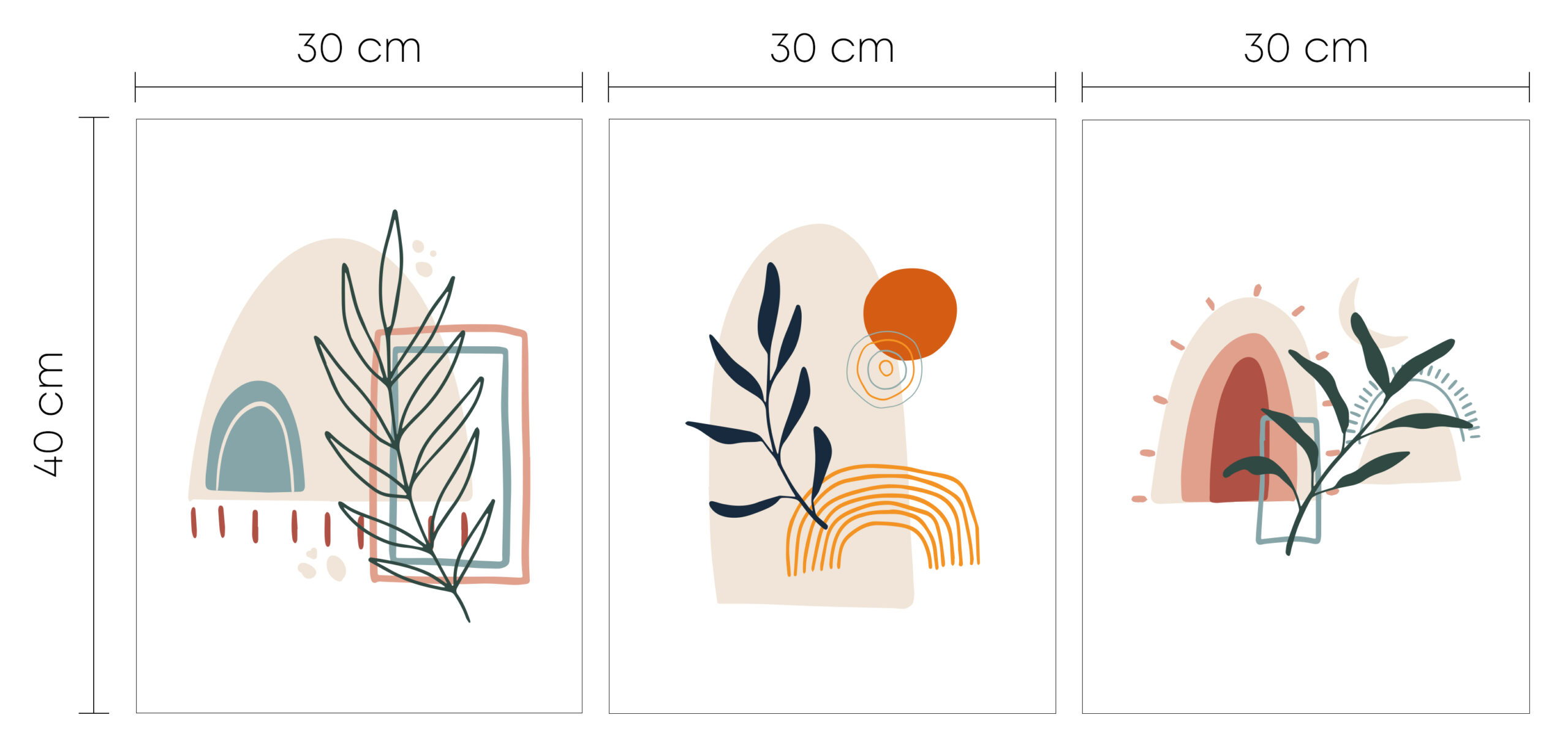 Zestaw 3 plakatów 30×40 rośliny abstrakcja no.3 na ścianę do salonu sypialni