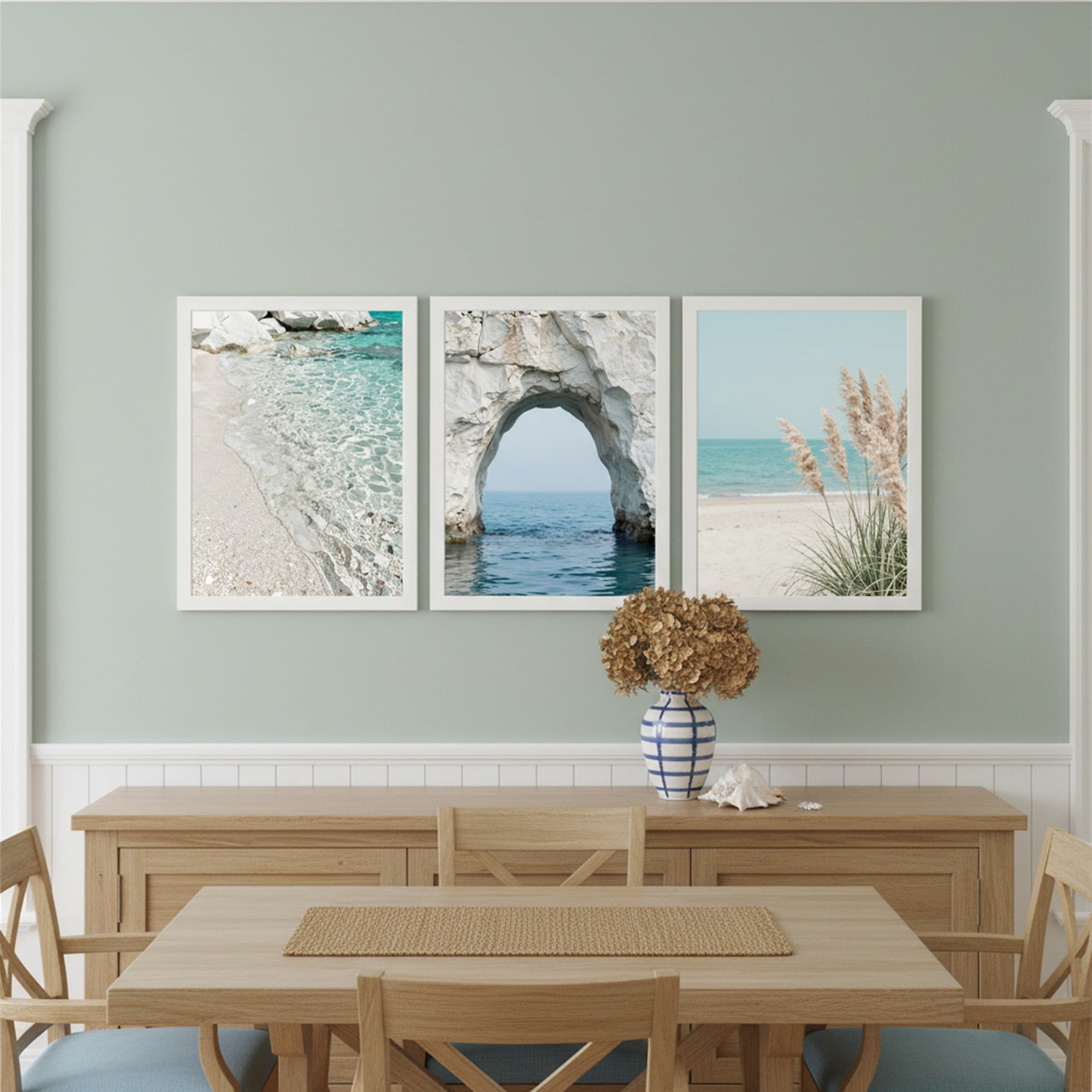 Przenieś się na rajskie wybrzeże bez wychodzenia z domu. Zestaw „Lazurowe Wybrzeże” to trzy harmonijne kadry, które celebrują czystość natury i letnie słońce. Od przejrzystej wody, przez monumentalną architekturę skał, aż po subtelne trawy na piasku – ten tryptyk to idealny wybór do jasnych, nowoczesnych wnętrz w stylu Hampton lub Scandi. Wydruk klasy premium na papierze Luster 260g.
