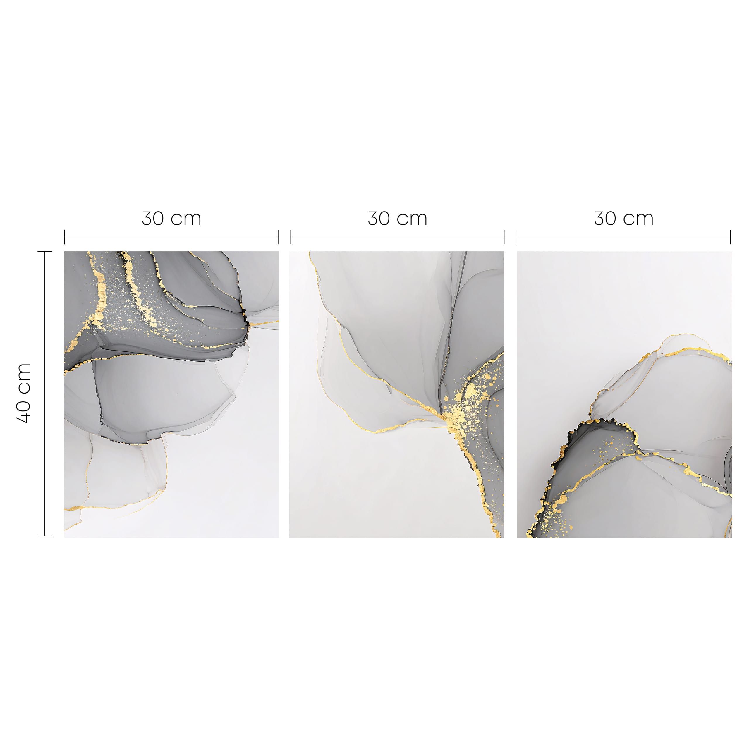 Zestaw 3 plakatów „Złoty marmur” – abstrakcja, szarość i złoto glamour